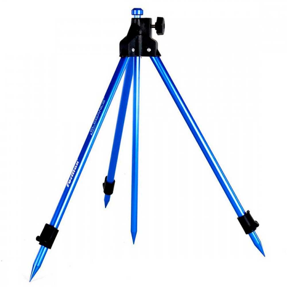 Телескопический трипод высшего качества Elegance Feeder Pro, очень хорошо спроектированный, в синем цвете. Он изготовлен из алюминия и прочных пластиковых компонентов, поэтому он не только легкий, но также чрезвычайно стабилен благодаря новой конструкции головки, соединяющей три регулируемые телескопические ножки. Сверху он оснащен стандартной металлической резьбой, подходящей для любого держателя удилища в линейке Elegance Pro. Высота может регулироваться как путем удлинения ног, так и путем подъема и опускания центрального стержня, который сжимается с помощью полноразмерного винта. Этот трипод складывается и регулируется очень легко. Поставляется с защитными крышками для острых частей ног.