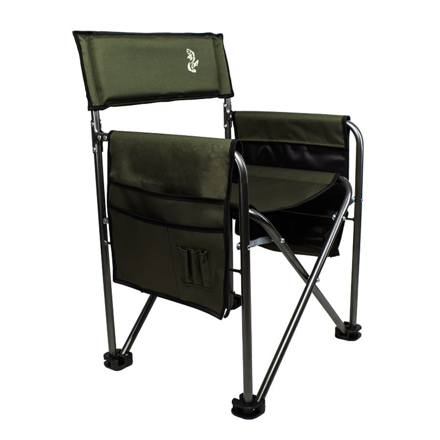 Удобное кресло для рыбалки и отдыха на природе. Имеет подлокотники и боковые карманы с 2-х сторон для всех видов мелочей. Наклон спинки 90°.