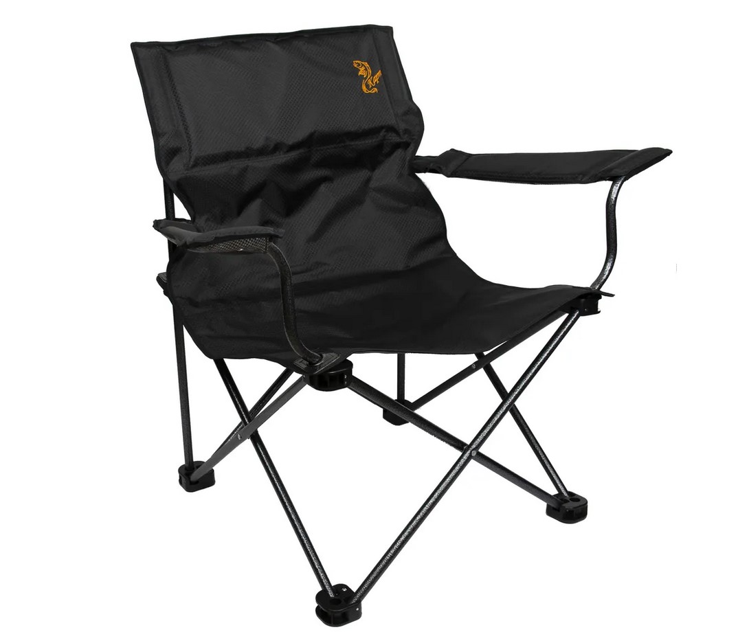 Каркас изготовлен из металлической трубы, покрыт молотковой краской (устойчива к царапинам и сколам), соединен винтами и денферными гайками. В основаниях кресла используется прочная пластмасса. Обивка и подлокотники изготовлены из ткани Оксфорд 600 ПВХ (не промокает, легко чистится от загрязнений), усилены тканью из пленочных нитей (не растягивается). В подголовнике и подлокотниках мягкое наполнение. В местах прохождения трубы через ткань установлены пластиковые прокладки, усиленные люверсами из цветного металла (не позволяет рваться ткани). Размеры: глубина-410 мм., ширина-420 мм., высота спинки-420 мм., высота сидения-450 мм., вес-3,6 кг. Нагрузка-120 кг.