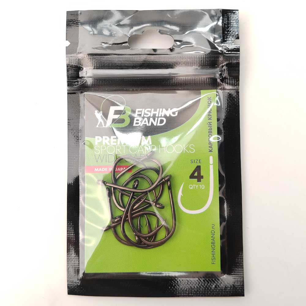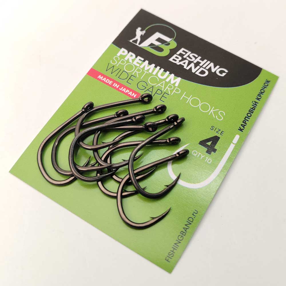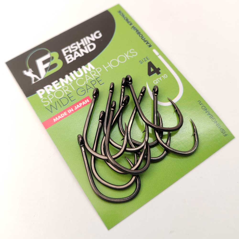 Карповые крючки PREMIUM SPORT от Fishing Band – с широким зацепом и с антибликовым тефлоновым покрытием. Они подойдут для спортивной и классической рыбалки. Очень острые и отлично держат заточку. Произведены в Японии.
