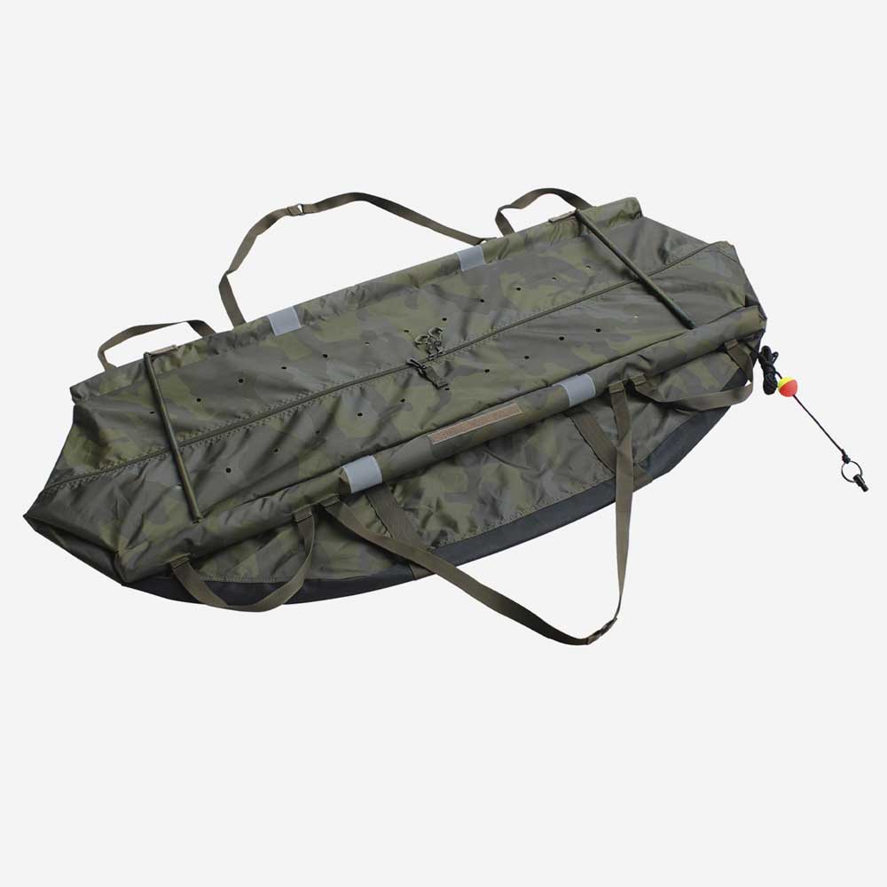 — Двойная молния с фиксатором надежно удерживает карпа внутри.